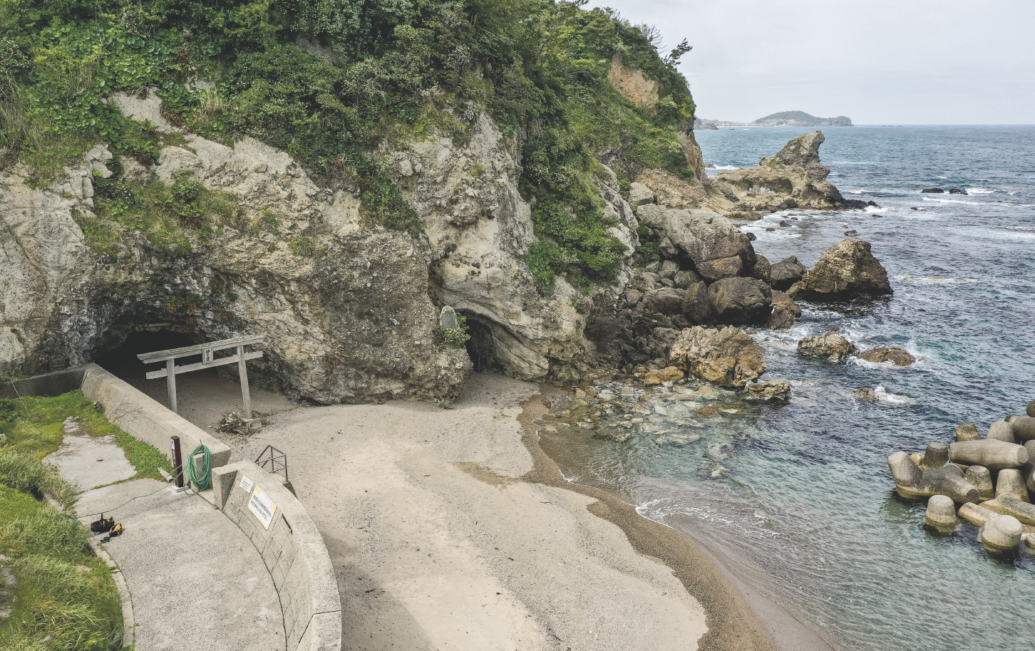 Há muito tempo, era um local de culto, e o Santuário Shizuma costumava estar dentro da caverna. Um portão torii ainda está em uma das bocas da caverna. O leito da caverna foi formado pela deposição de resíduos vulcânicos há cerca de 15 milhões de anos, e as falhas e diques estão intrincadamente entrelaçados, revelando a intensidade dos movimentos tectônicos que formaram o arquipélago japonês. O amplo espaço dentro da caverna foi formado quando as ondas corroeram as partes frágeis da rocha rachadas pelas falhas.