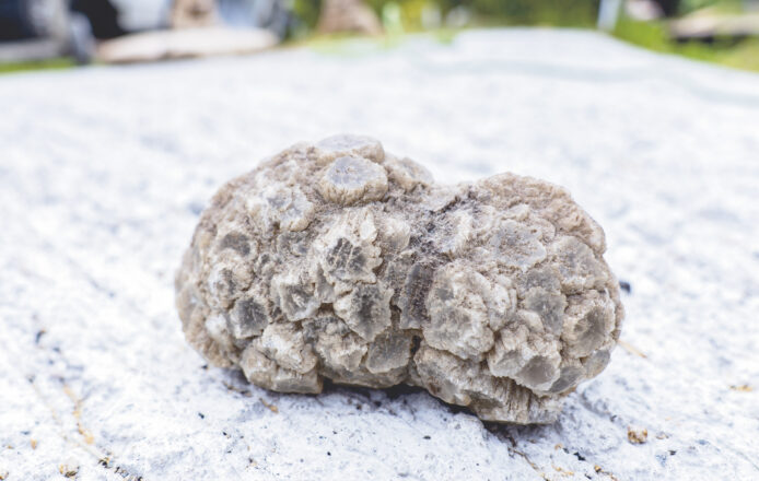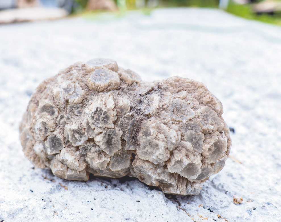 A Mina Matsushiro, que produzia aragonita, foi também um local de mineração de gesso desde a era Meiji até os anos 60. A Província de Shimane já chegou a se orgulhar de produzir o maior volume de gesso do Japão, com minas na cidade de Oda e na cidade de Izumo apoiando a produção, sendo a mina Matsushiro uma das principais. A aragonita é encontrada perto de depósitos de gesso e era valorizada como objeto ornamental devido à sua forma única. O local é agora designado como monumento natural nacional sob o nome de “Área de Produção Arareishi da Mina Matsushiro”, mas os poços da mina foram fechados e estão atualmente inacessíveis.